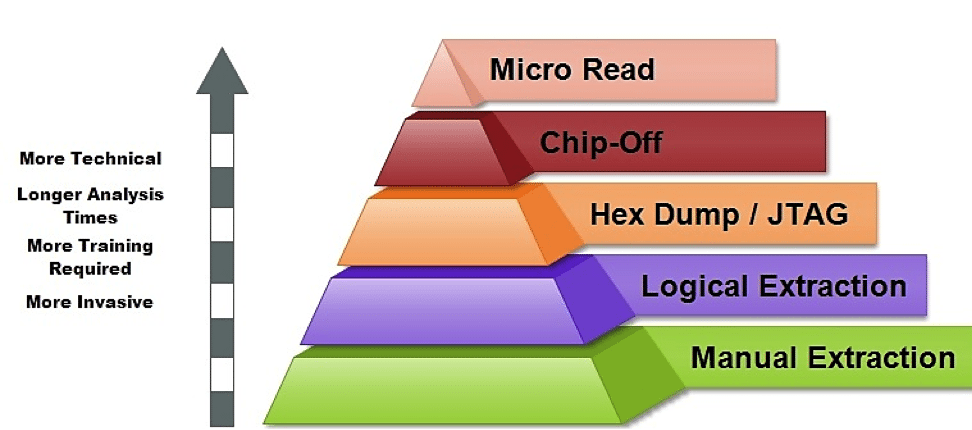 Fiziksel arızası olmayan mobil cihazlar üzerinde 3 farklı çıkartım tekniği gerçekleştirilmektedir.